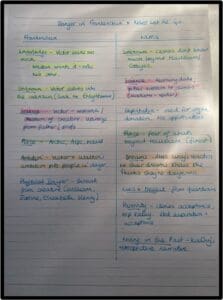 - Identify the main themes in each novel and then see which feature in both of your novels – these are the ones to revise really thoroughly. Make big mind maps or columned tables where you note down the ways each theme is evident in each book. Don’t do separate ones for each novel as you do not want to consider the novels in isolation as this is an AO4 question. When you’ve done this, use highlighters to link points which would go well together in an essay.